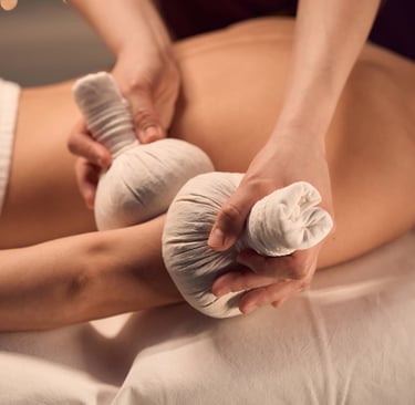 Herbal compress massage is a traditional heat therapy that uses warm cloth bundles filled with natural herbs. These heated compresses are gently applied to the body to relax muscles, improve circulation, and calm the nervous system.