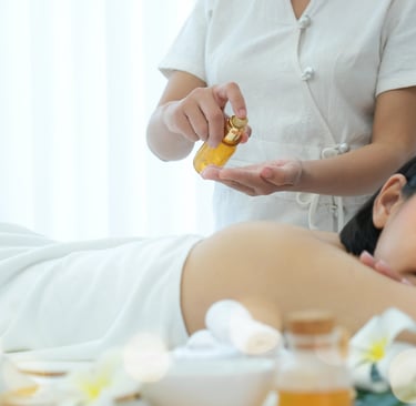 Aromatherapy massage is a holistic treatment that combines gentle massage techniques with natural essential oils extracted from flowers, herbs, and plants. These oils are carefully selected to support relaxation, stress relief, or rejuvenation.